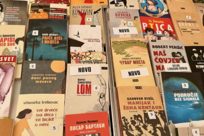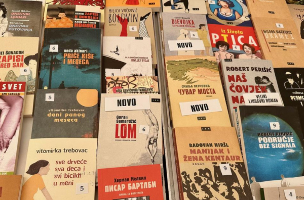 Prethodno sam posetio veliki šator na Trgu nezavisnosti na kojem su regionalni izdavači pokazivali šta znaju i umeju. Na štandu izdavača Lom primećujem knjigu jednog od najpoznatijih književnih imena današnjice – čoveka koji životom i književnošću povezuje Bosnu, Srbiju, Hrvatsku i Crnu Goru.