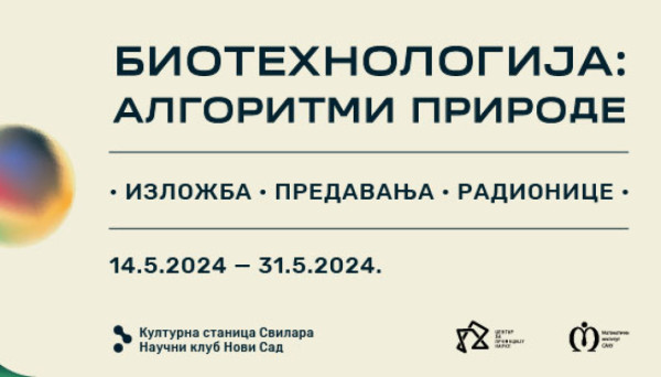 U toku maja, Novi Sad će biti pozornica matematike, a publika će u Kulturnoj stanici Svilara moći da poseti izložbu posvećenu razvoju biotehnologije – od tradicionalnih znanja u vezi sa procesom fermentacije do savremenih algoritama koji oblikuju najnovija biotehnološka otkrića. Posetioci će imati jedinstvenu priliku da otkriju kako je radoznalost dovela ljude do neverovatnih naučnih dostignuća zasnovanih na mogućnostima ćelijskih i biomolekularnih sistema i procesa, kao i to kako su ove inovacije zauvek promenile naše poimanje sveta. Osim toga, moći će da saznaju više o prvoj „saradnji“ između ljudi i mikroorganizama, a upoznaće se i sa načinima na koji su ljudi koristili mikroorganizme i procese fermentacije u preradi hrane. Postavka će obuhvatiti i najnovije biotehnološke alate zasnovane na složenim matematičkim modelima, koji su ključni za razumevanje i predviđanje ponašanja bioloških sistema. Matematičke ideje u sprezi sa biotehnologijom sprovešće posetioce sve do ovog trenutka i najaktuelnijih istraživanja u Srbiji i svetu. Izložba će biti otvorena svakog dana, osim ponedeljka, od 12 do 20 časova, sve do 31. maja.