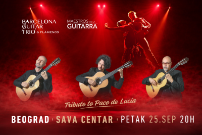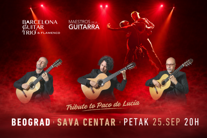 Jedan od najuzbudljivijih flamenko projekata današnjice, Barcelona Guitar Trio & Dance, po prvi put dolazi pred domaću publiku sa spektakularnim programom "Tribute to Paco de Lucía", posvećenim legendarnom španskom gitaristi Paco de Lucía. Gde god da nastupe, sa sobom donose autentični duh Španije, a ulaznice za njihove koncerte gotovo uvek se rasprodaju u rekordnom roku.