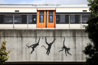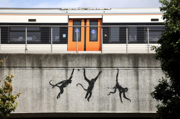 Naslikao je tri majmuna koji se ljujaju preko mosta železničke stanice u istočnom Londonu.