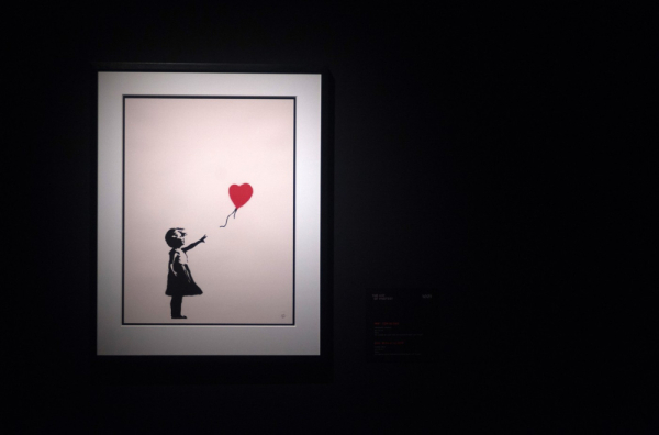 Rad prikazuje mladu devojku koja poseže za crvenim balonom u obliku srca, a postoji i nekoliko murala u Londonu i po svetu, koji prikazuju istu sliku, prenosi Rojters.