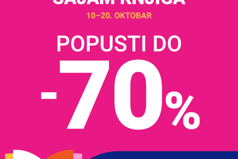 Očekujte neverovatne popuste - 30 odsto na 30 najčitanijih naslova i novitete iz oblasti beletristike i dečje književnosti, kao i 40, 50 i 60 odsto popusta na odabrana izdanja. Ne propustite jedinstvenu priliku da kupite omiljene knjige po ceni sniženoj čak 70 odsto!
