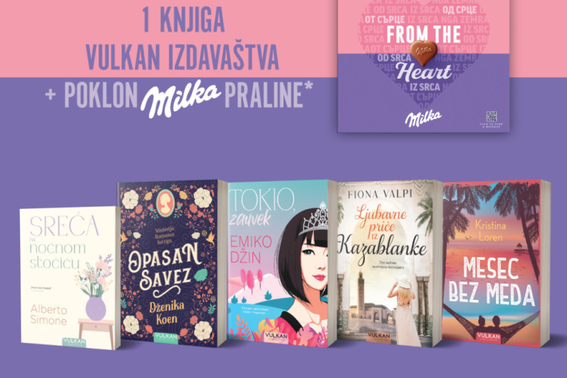 Najlepši izbor u susret Danu žena čeka vas u knjižarama Vulkan širom Srbije. Kupovinom jedne od pet najnovijih knjiga Vulkan izdavaštva na poklon dobijate neodoljive Milka praline.