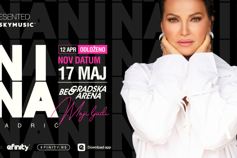 Koncert Nine Badrić, koji je bio zakazan za subotu 12. aprila, zajedničkom odlukom organizatora i izvođača pomeren je za 17. maj.