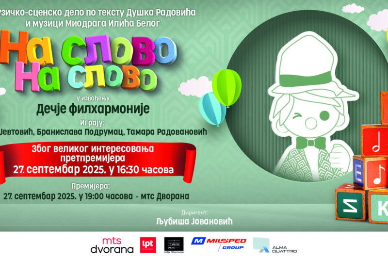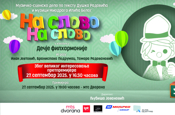 Zbog velikog interesovanja, dva izvođenja muzičko-scenskog spektakla 27. septembra u mts Dvorani. Pretpremijera u 16:30, a premijera u 19:00. Karte u prodaji na blagajni i sajtu mts Dvorane.