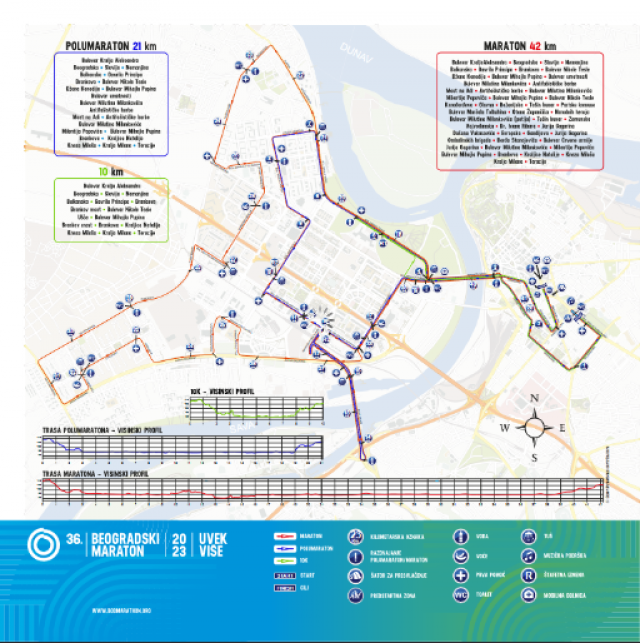 "Svi trkači će sa priprema početi već u 6, 7 ujutru u predstartnoj zoni na Trgu Nikole Pašića, a učesnici moraju da dođu najkasnije do 8.30 sati. Medicinska zaštita trkača je jedna od novina koje smo ove godine uveli, kako bismo rasteretili zdravstveni sistem Grada Beograda. Imaćemo u saradnji sa Crvenim krstom dve poljske bolnice, 15 saniteta na samoj stazi, svi trkači su nam osigurani preko našeg partnera, volonteri Crvenog krsta će patrolirati na 35 kilometara staza na trotinetima i pravite kvalitetnu i pravu trijažu kako bismo resurse usmeravali na pravi način usmeravati, ali nadamo se da to nećemo koristiti", rekao je Habuš. ć