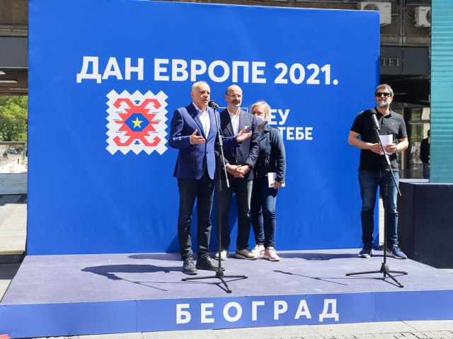 Gradonačelnik Beograda Zoran Radojičić danas je, zajedno sa šefom delegacije Evropske unije u Beogradu Semom Fabricijem, prisustvovao obeležavanju Dana Evrope u Knez Mihailovoj ulici.