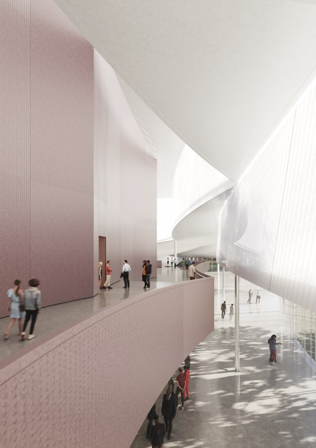 Koncertna dvorana Beogradske filharmonije sastoji se od četiri glavne prostorne celine – velike dvorane za koncerte, sale za recitale, kreativnog centra i podijuma – svaki sa drugačijim karakterom, slaveći različite muzičke žanrove, privlačući različitu publiku i podstičući različite aktivnosti. Ove četiri prostorne celine okružuju društveni prostor koji čini srce Koncertne dvorane Beogradske filharmonije, sa zajedničkim pomoćnim prostorijama smeštenim ispod novostvorenog gradskog trga. Kroz ovako uređen prostor stvaramo zgradu bez prednje i zadnje strane, što rezultira jednom arhitektonskom panoramom. Zgrada i novi unutrašnji zajednički društveni prostor okupljaju se pod nadstrešnicom koja se prostire na svakom mestu, meko se oslanjajući između njih. Kroz ovu ekspresivnu formu zgrada govori o kretanju muzike. Materijalnost ovog pokrova stvoriće efekat talasanja koji odražava šarene vode reke Dunav, odražavajući pejzaž koji se menja sa promenom godišnjih doba i nagoveštavajući jedan novi spomenik kulture.