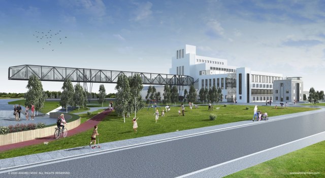 Upravna zgrada zadržava administrativnu funkciju, sa dodatnim galerijskim prostorom i terasom na krovu. Pumpna stanica i filtersko postrojenje postaju ugostiteljski sadržaj.