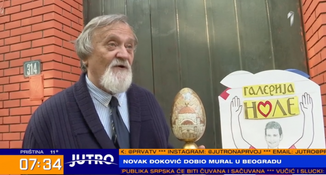Idejni tvorac izložbe prof. dr Zoran Mihajlović rekao je da želi da Novak primi uskršnje jaje od stanara ovde zgrade uoči praznika.