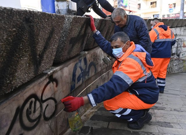 Zamenik gradonačelnika Beograda Goran Vesić prisustvovao je uklanjanju grafita u podzemnom prolazu na Zelenom vencu.
