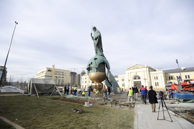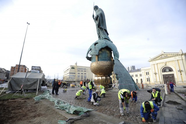 Na Savskom trgu majstori privode kraju radove, kako bi sve bilo spremno za otvaranje rekonstruisanog trga i otkrivanje spomenika Stefanu Nemanju, najavljeno za 27. januar.