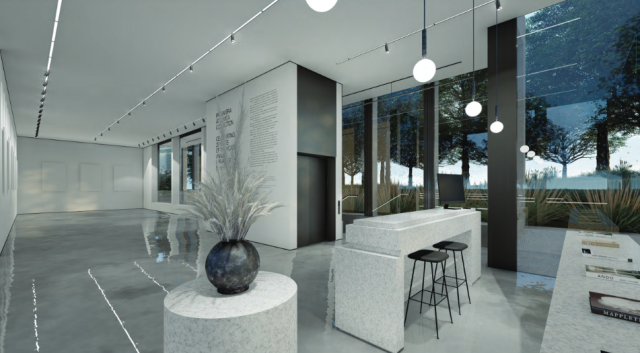 U prizemlju je planirana galerija i mala galerijska prodavnica, dok je u suterenu predviđena stalna postavka dela i artefakata iz života Moma Kapora, kao što su skice, crteži, knjige.