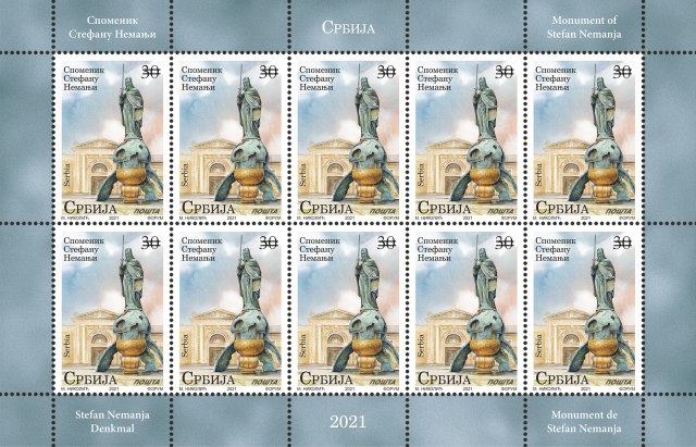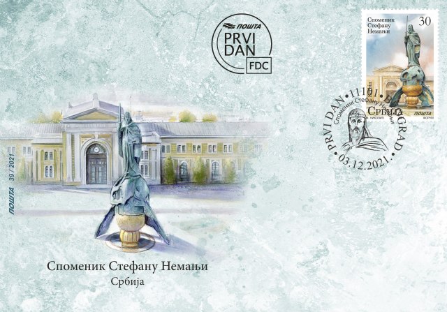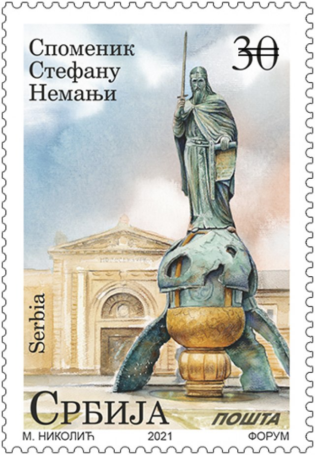 Pošta Srbije pustila je u opticaj prigodno izdanje poštanskih maraka "Spomenik Stefanu Nemanji", u čast velikog župana Stefana Nemanje, rodonačelnika srpske srednjovekovne dinastije Nemanjića i monumentalnog vajarskog dela otkrivenog na Savindan ove godine na Savskom trgu u Beogradu, ispred nekadašnje zgrade Glavne železničke stanice.