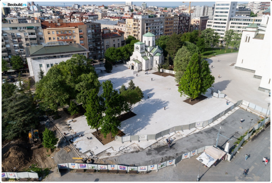Završen prvi deo radova ispred Hrama Svetog Save FOTO
