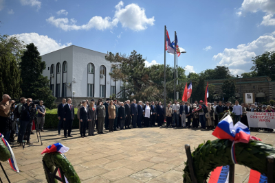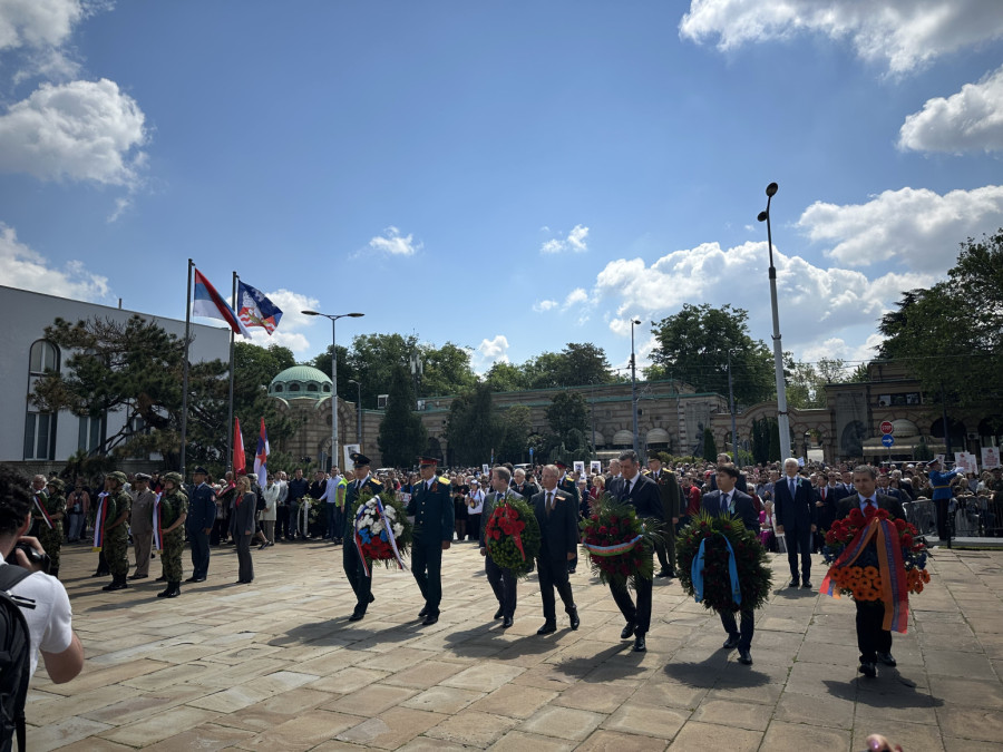 Vence su položili predsednica Skupštine Srbije Ana Brnabić, ministarka za rad, zapošljavanje, boračka i socijalna pitanja Milica Đurđević Stamenkovski, kao i ruski ambasador u Beogradu Aleksandar Bocan Harčenko, predstavnici Ministarstva odbrane i Vojske Srbije, u ime grada Beograda članica gradskog veća Violeta Filip, predstavnici ambasada Belorusije, Azerbejdžana, Kazahtana, Jermenije i Gruzije, delegacije SUBNOR-a Srbije, SUBNOR-a Beograda, Besmrtnog Puka, udruženja za negovanje tradicija oslobodilačkih ratova Srbije i brojni građani.