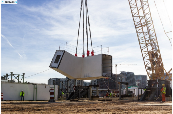 Stiglo je sedam rečnih barži sa delovima novog mosta i do sada je na gradilište prebačeno oko 3500 tona čeličnih elemenata, što je više od polovine ukupne konstrukcije mosta, piše Beobuild.