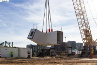 Podizanjem prvog segmenta čelične konstrukcije novog savskog mosta na montažnu skelu, simbolično je obeležen početak procesa sastavljanja budućeg glavnog raspona od delova koji su prethodnih dana dopremljeni na gradilišni plato.