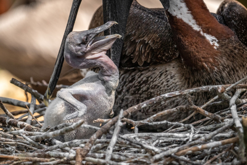 U pitanju je mladunče pelikana, prva rođena beba u Beo Zoo Vrta koja još uvek nema razvijeno perje i ne može da leti.