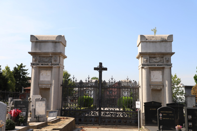 Italijansko vojno groblje je završeno 1931.godine. Na ovom su prostoru sahranjeni Italijanski dobrovoljci izginuli u 1. Svetskom ratu. Groblje je ograđeno masivnom ogradom od betona i kovanog gvoždja, a karakteriše ga i oživljena arhitektura svetog Rimskog carstva pomešana sa hrišćanskom simbolikom. Na Italijanskom vonom groblju je između ostalog postavljena spomen ploča sedmorici prvih dobrovoljaca pripadnika "Legije Garibaldinaca" koji su prebegli u Srbiju i borili se u redovima Zlatiborskog četničkog odreda u četi Vladimira Bana. Petorica ovih dobrovoljaca su poginuli u borbama na Babinoj Glavi kod Višegrada, tamo su i sahranjeni, ali njihova tela nisu nikada pronađena. Žrtvovanje ovih hrabrih boraca je trebalo da predstavlja okosnicu za formiranje Italijanskog vojnog groblja na Novom groblju u Beogradu.