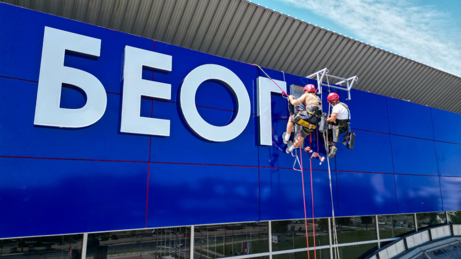 Počelo je postavljanje natpisa "Beogradska arena" i očekujemo da će biti gotovo za koji dan sa obe strane.