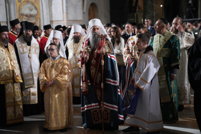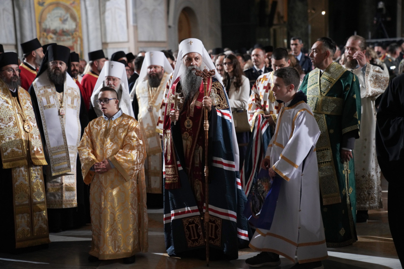 Litiju predvodi patrijarh srpski Porfirije u pratnji arhijereja, stigla je ispred Hrama Svetog Save, gde se očekuje da će se obratiti poglavar Srpske pravoslavne crkve (SPC).