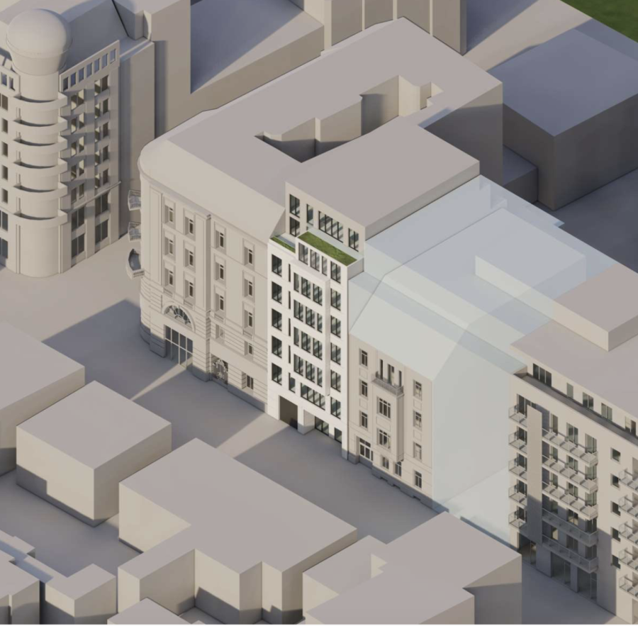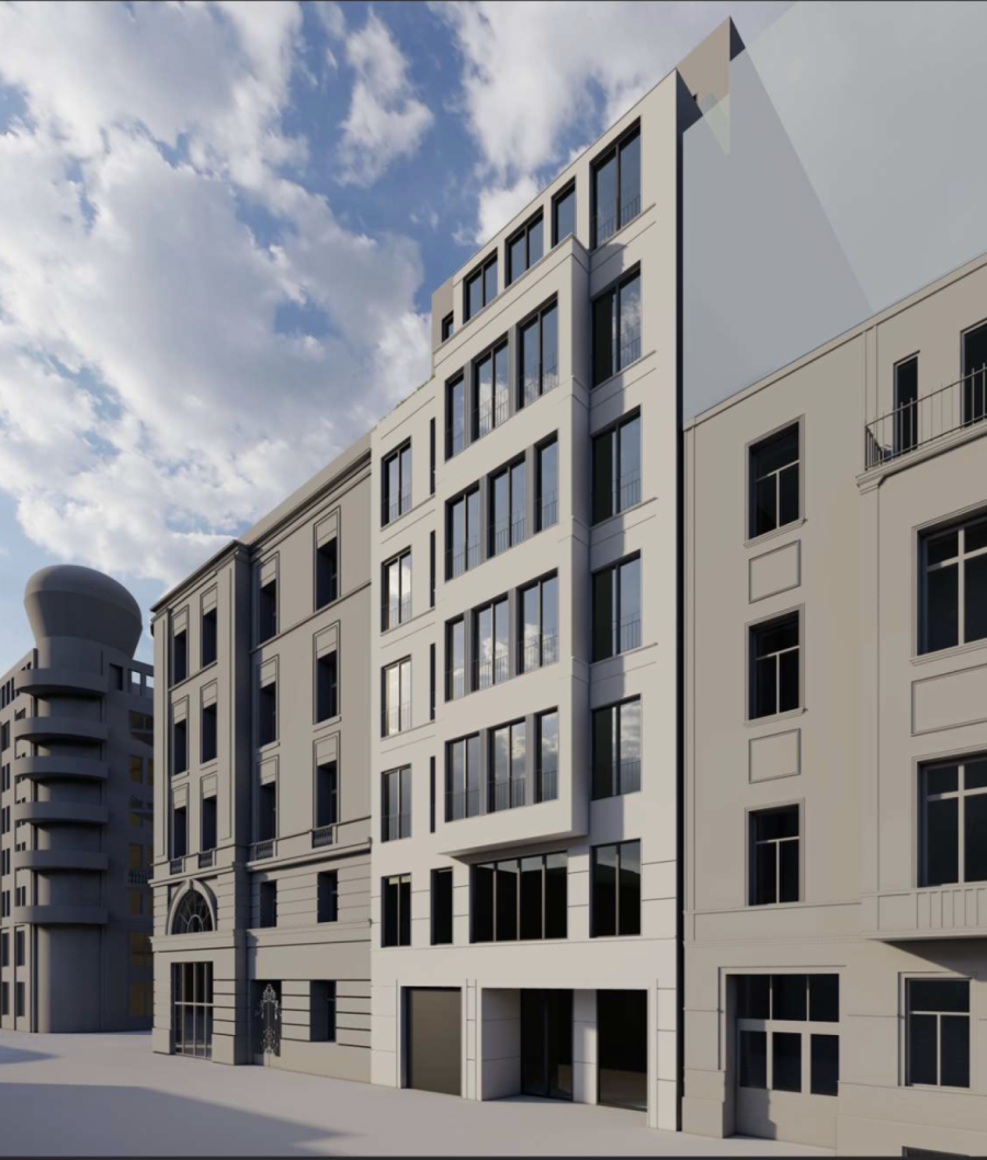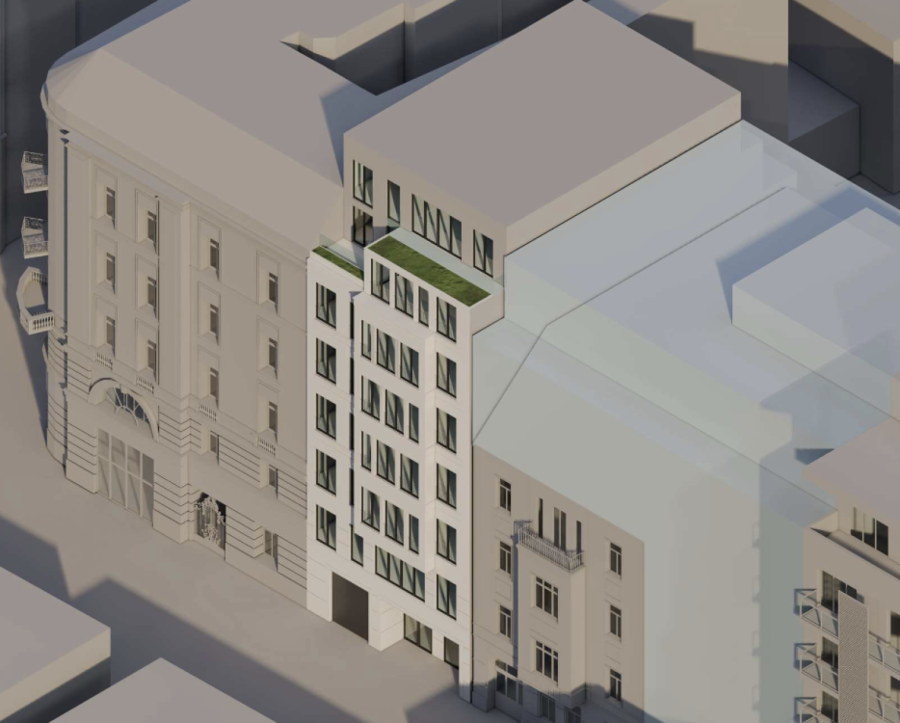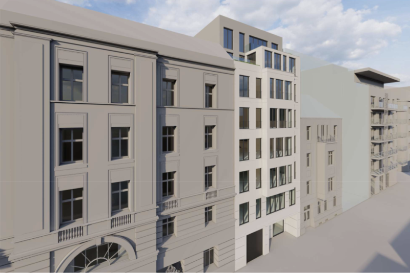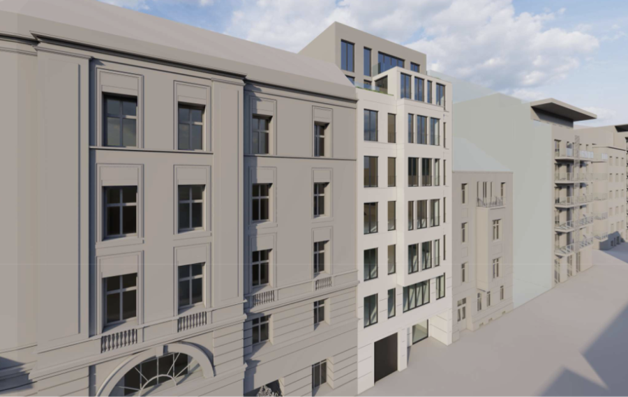 U zgradi je planirano devet stanova i 11 parking mesta u podzemnog garaži, a ukupna bruto površina zgrade je 1.996,88 kvadrata.