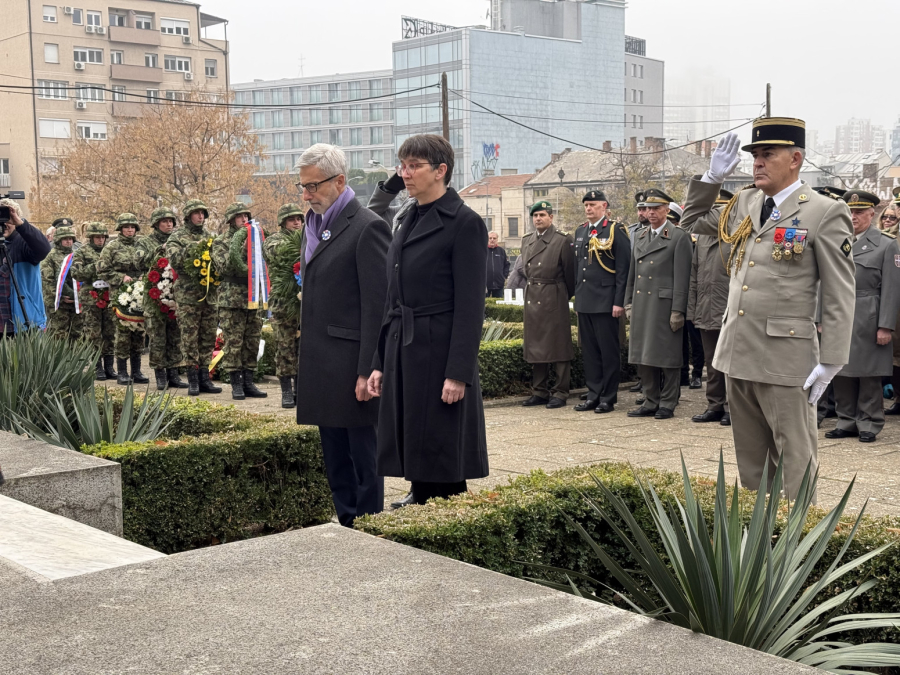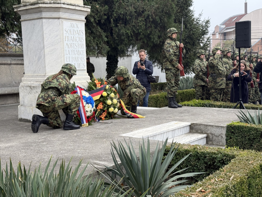 Državna ceremonija započeta je polaganjem venaca i odavanjem počasti na Francuskom vojnom groblju. Kao deo programa, hor učenika francuske škole iz Beograda je izveo himne Fracuske i Srbije. Prisutnima se obratio i Ambasador Francuske u Beogradu, nj.e. Pjer Košar. Zatim su pročitana imena nekih od francuskih vojnika nastradalih u mirovnim operacijama u toku prethodne godine.