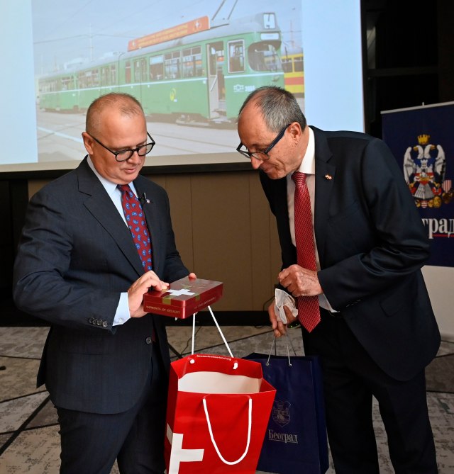 Zamenik gradonačelnika Goran Vesić i ambasador Šajcarske u Beogradu Urs Šmid prisustvovali su danas svečanosti u hotelu Hilton povodom obeležavanja dvadesetogodišnjice donacije švajcarskih tramvaja Gradu Beogradu.