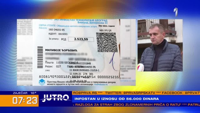Računi za Infostan spadaju u neizbežne mesečne troškove. Beograđanin Milivoje Đorđević, koji mesečno u proseku plaća oko 2.500 dinara za Infostan, dobio je račun koji je iznosi skoro 56.000 dinara.