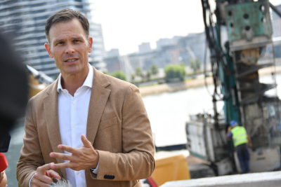 Ministar finansija Siniša Mali obišao je početak radova na izgradnji novog Savskog mosta u Beogradu, sa novobeogradske strane.