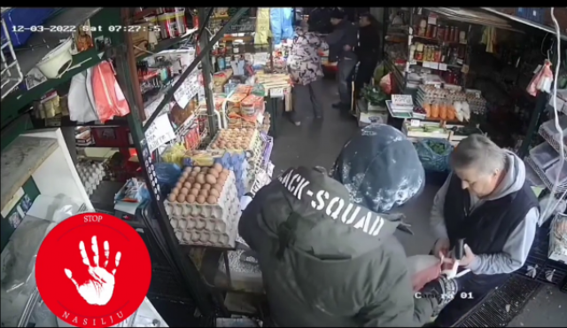 Napadača je potom udaljio muškarac, nakon čega se on zaputio ka njenoj tezgi gde je šutirao kutije i proizvode koji su se našli tu.