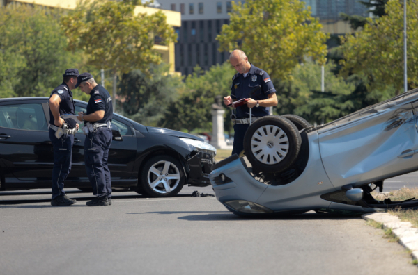 Teška saobraćajna nesreća u Beogradu: Troje povređenih; Prevrnut automobil