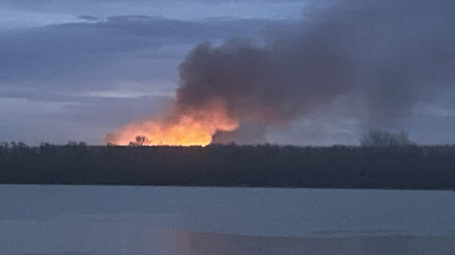 Na snimku se može videti kako se crni gust dim širi naseljem.