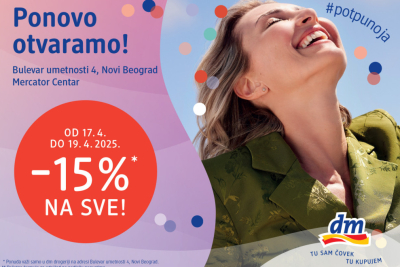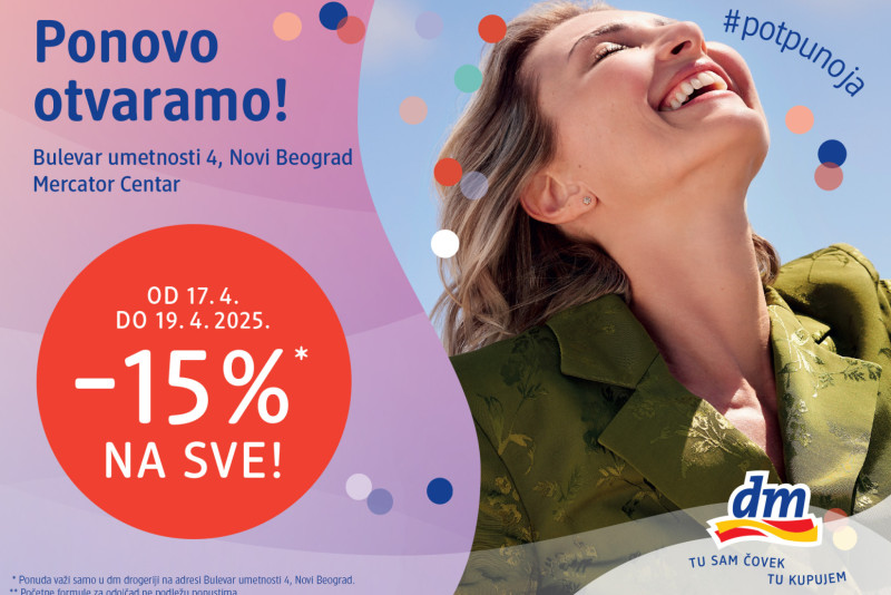Na dobro poznatoj lokaciji tržnog centra Mercator na Novom Beogradu, ponovo je otvorena jedna od omiljenih dm drogerija u gradu.