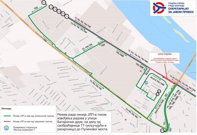 Linije 73 i 706: – u smeru ka Batajnici vozila će saobraćati redovnom trasom;