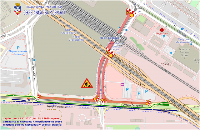 Radi izvođenja radova na rekonstrukciji i proširenju dela Ulice Jurija Gagarina i dela Ulice Marka Hristića sa pripadajućom infrastrukturom i izvođenju radova na rekonstrukciji i proširenju dela ulice Antifašističke borbe u periodu od 12.12. do 31.12. 2020, dolaziće do zatvaranja za saobraćaj i izmene režima saobraćaja.
