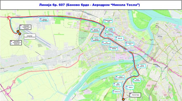 Nova autobuska linija 607 od sutra se uspostavlja od Banovog brda do Aerodroma "Nikola Tesla" duž Bulevara heroja sa Košara, saopšteno je iz Sekretarijata za javni prevoz.
