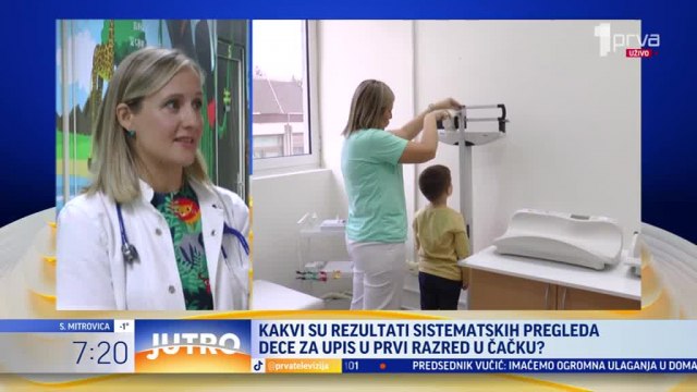 Doktorka Nataša Jovanović je za TV Prva objasnila da je sistematski pregled pred prvi razred najveći pregled za svu decu, koji obuhvata, osim pedijatrije, pregled i analize fizijatra, ORL, logopeda, oftamologa.