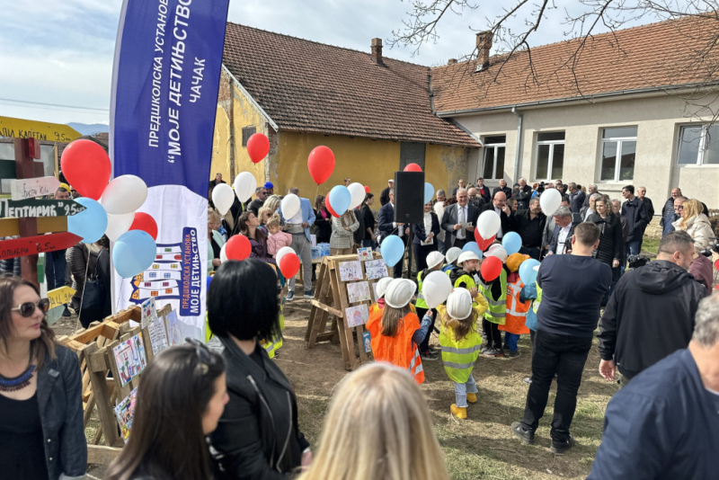 Dodala je da je grad Čačak u okviru Projekta "Inkluzivno predškolsko vaspitanje i obrazovanje" dobio grant u iznosu od 4,8 miliona dinara. U izgradnju novog vrtića biće uloženo preko 110 miliona dinara, prostiraće se na površini od 1200 metara kvadratnih. Izgradnjom novog objekta obezbediće se 120 novih mesta za decu iz ovog grada, što će doprineti smanjenju liste čekanja za upis u predškolsku ustanovu.