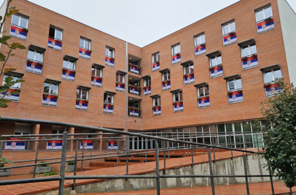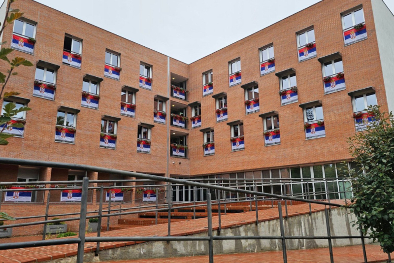 Takođe, zgrada opštine Lučani cela je prekrivena velikom srpskom zastavom.