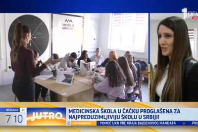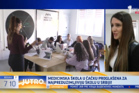 Čačanska Medicinska škola dobila je međunarodnu nagradu "The Entrepreneurial School Award 2024", zahvaljujući kojoj je proglašena za najpreduzimljiviju školu u Srbiji.