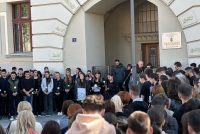 Kako bi odali poslednju počast svom voljenom profesoru, veliki broj učenika danas se okupio ispred Gimnazije. Jedna od učenica je održala i govor.