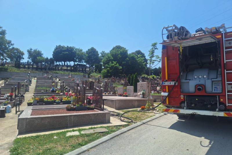 "Dim se nadvio iznad jednog dela groblja gde su izgorele tuje velikom brzinom, ali na svu sreću vatrogasci su stigli na vreme i sprečili da se širi dalje", kažu očevici za ageniju RINA.