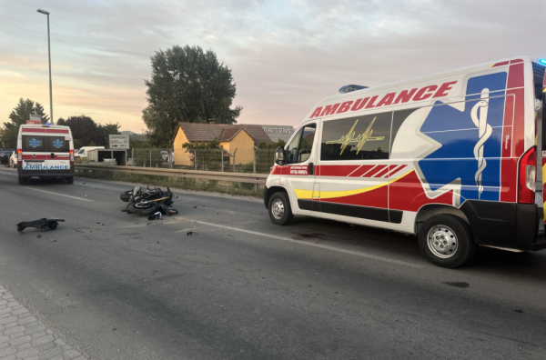 Prema prvim informacijama sa lica mesta, vozač je zadobio povrede glave, a krv je bila vidljiva i po kolovozu. Do nezgode je došlo prilikom sudara sa automobilom.