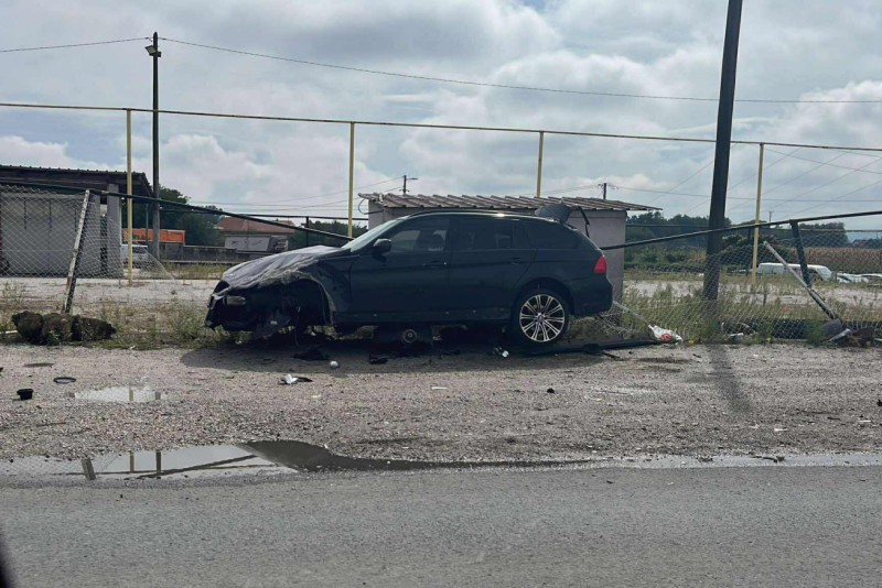 "Od siline udara vozilo je probilo zaštitnu ogradu i završio u ogradi od privatnog placa. Na automobilu je otkinut točak. Nadamo se da nema povređenih", kaže za RINU jedan od očevidaca.