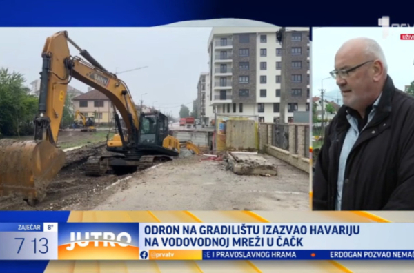 "U utorak je došlo je do obrušavanja rova, iskopa za poslovno-stambeni objekat koji izvodi investitor, jedan od investitora koji pravi zgradu, tako da smo morali da izmestimo vodovodnu mrežu koja je prečnika 150 milimetara livenog odlivka su bile cevi u pitanju, u dužini od nekih 62 metra. Nije samo 62 metra spojeva, tu su i dve vodovodne šahte sa armaturom, to su šiberi koje smo mi danas, danas treba da se formira ta šahta, inače građani su dobili vodu juče oko 17.30, za sve vreme dok smo mi radili, u ovoj neposrednoj našoj blizini je bila obezbeđena cisterna sa pijaćom vodom, tako da su svi građani mogli da se snabdeju za neophodne potrebe", kazao je Vladimir Đinić