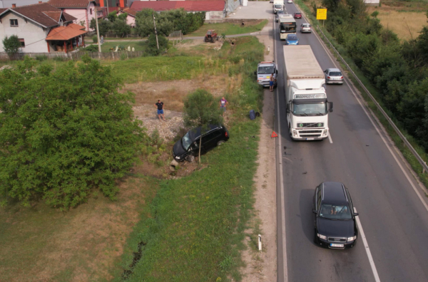 Od siline sudara putničko vozilo sletelo je sa magistrale i udarilo u betonski propust.