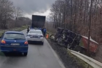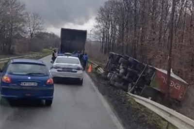 "Vozač kamiona je iz nepoznatih razloga izgubio kontrolu, probio je bankinu u završio prevrnut u kanalu pored puta", kaže za RINU jedan od očevidaca.