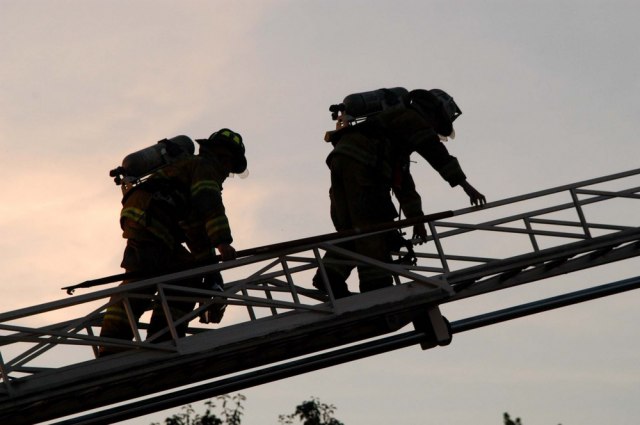 Na lice mesta odmah su stigli vatrogasci i policija, koji nastoje da nesrećnog čoveka odgovore od suicidne namere.